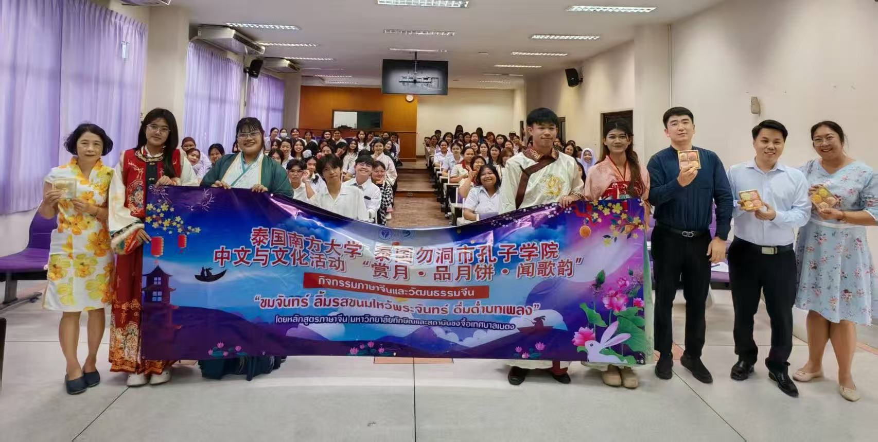 2025年9月24日,由重庆大学与泰国勿洞市政府共建的泰国勿洞市孔子学院联合泰国南方大学(Thaksin University)共同举办了中秋活动——“赏月·品月饼·闻歌韵”,来自南方大学人文与社会学院中文专业的100余名师生积极参与。